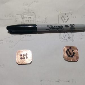 Primero y para evitar el problema original de los Pilot, decidí usar una tarjeta virgen de doble cara con una película de cobre bastante gruesa. Corté unos cuadrados y ahí empezó todo. Vean la comparación de la tarjetita delgadita original del Pilot y la PCB en la que se fabricó mi foco.